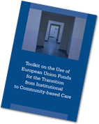 The Toolkit on the Use of European Union Funds for the Transition from Institutional to Community-based Care (PDF) aims to explain how Structural and Investment Funds can support national, regional and local authorities in designing and implementing structural reforms aimed at facilitating the development of quality family-based and community-based alternatives to institutional care.